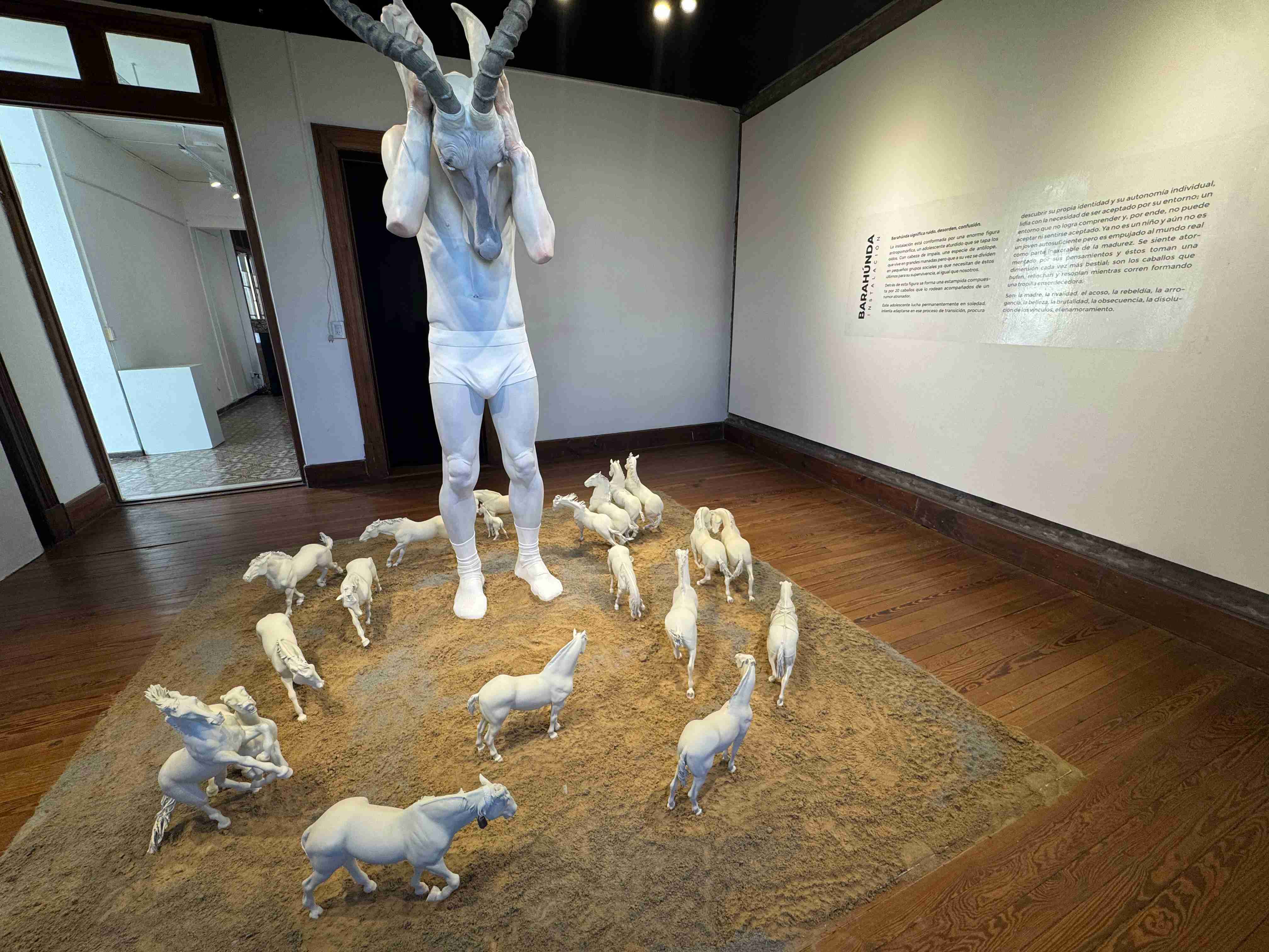 La instalación está conformada por una enorme figura antropomórfica, un adolescente aturdido que se tapa los oídos. Con cabeza de impala, una especie de antílope que vive en grandes manadas pero que a su vez se divide en pequeños grupos sociales ya que necesitan de estos últimos para su supervivencia, al igual que nosotros.