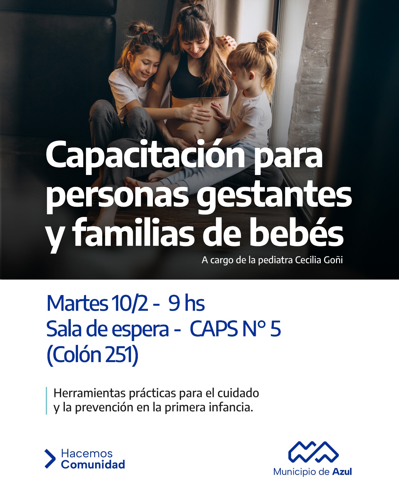 Durante el encuentro se brindará información sobre maniobras básicas ante situaciones de emergencia en lactantes, con el objetivo de ofrecer herramientas prácticas para el cuidado y la prevención en la primera infancia.