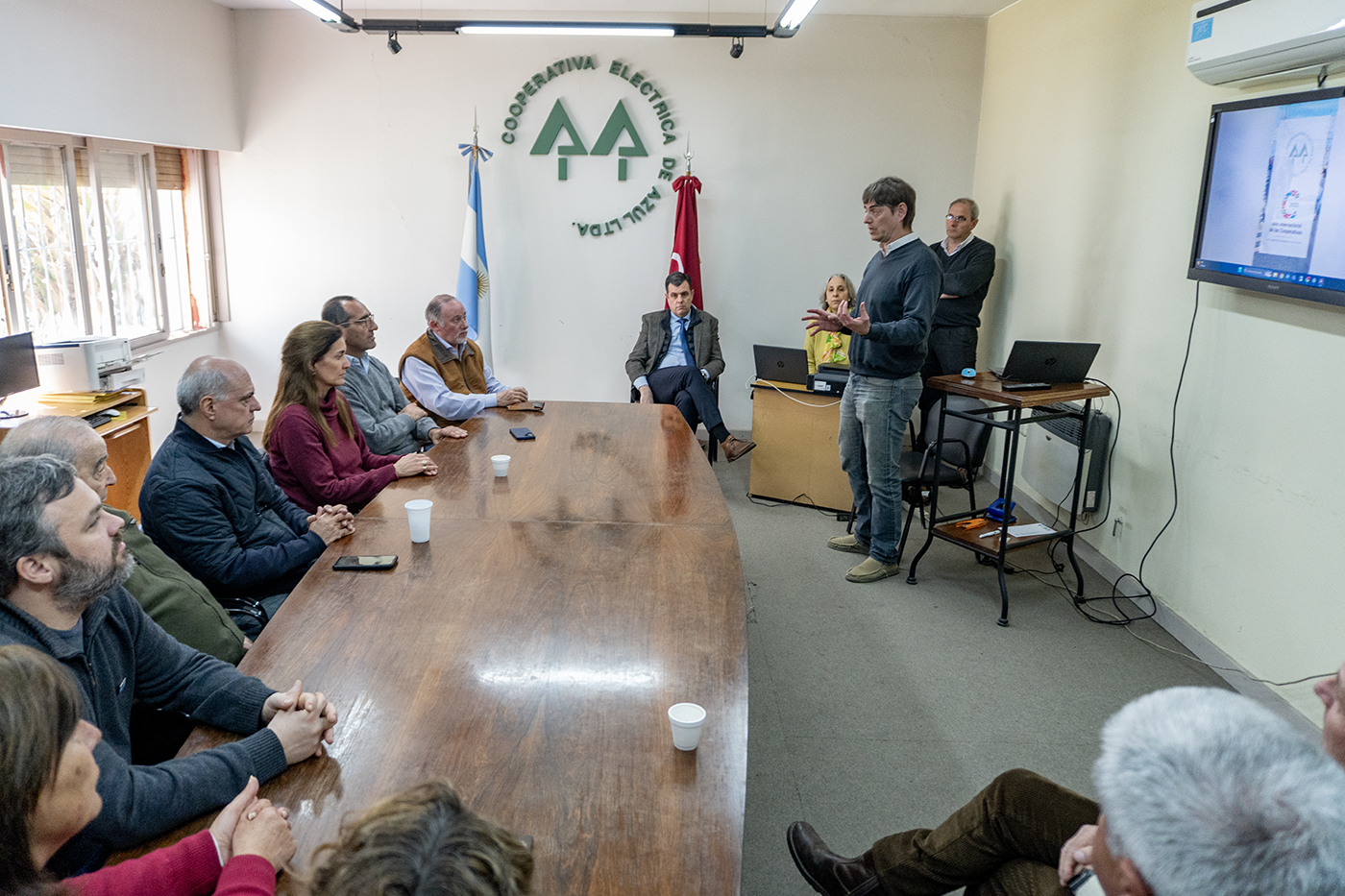 Del encuentro participaron el intendente Nelson Sombra; el secretario de Gobierno y Jefatura de Gabinete Ignacio Pallia; la secretaria de Educación, Cultura, Deportes y Juventud Laura Barbalarga; el subsecretario de Producción, Comercio e Innovación Carlos Pagano; la presidenta del Concejo Deliberante Pilar Álvarez, la concejala Inés Laurini, y miembros del Consejo de Administración de la CEAL, encabezado por Daniel Arrastúa.