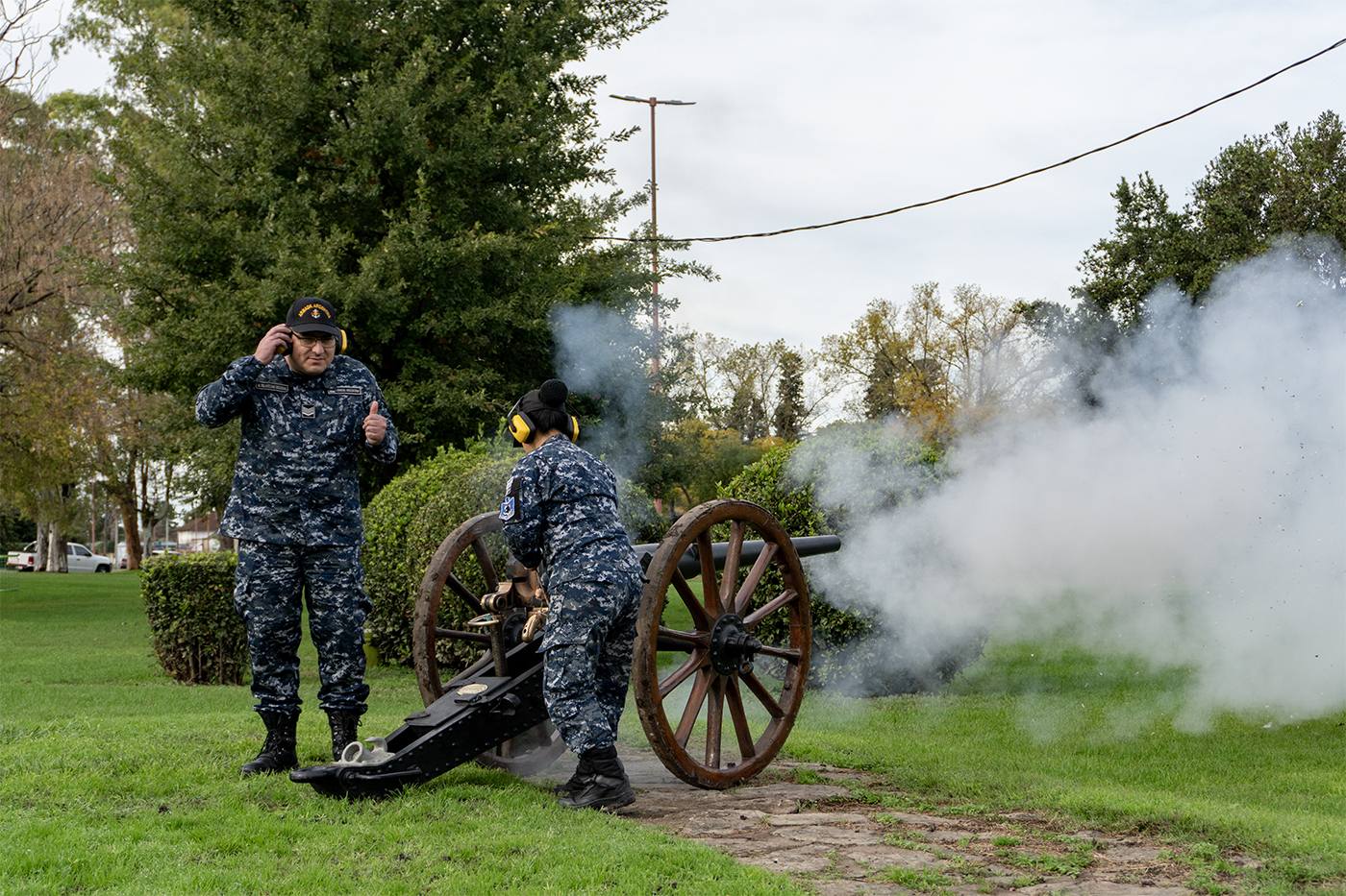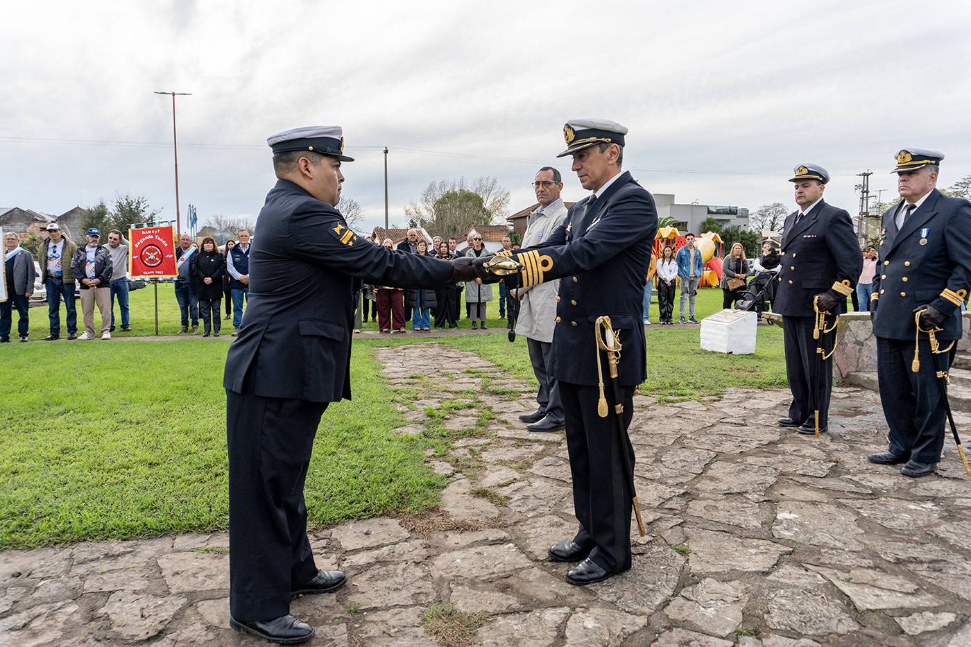 En la oportunidad, se entonaron las estrofas del Himno Nacional Argentino y se expresaron palabras alusivas a la fecha donde se recordó el aniversario del Combate Naval de Montevideo, fecha que marcó la victoria de la Escuadra Nacional al mando del Almirante Brown sobre las fuerzas navales españolas en el Río de la Plata.