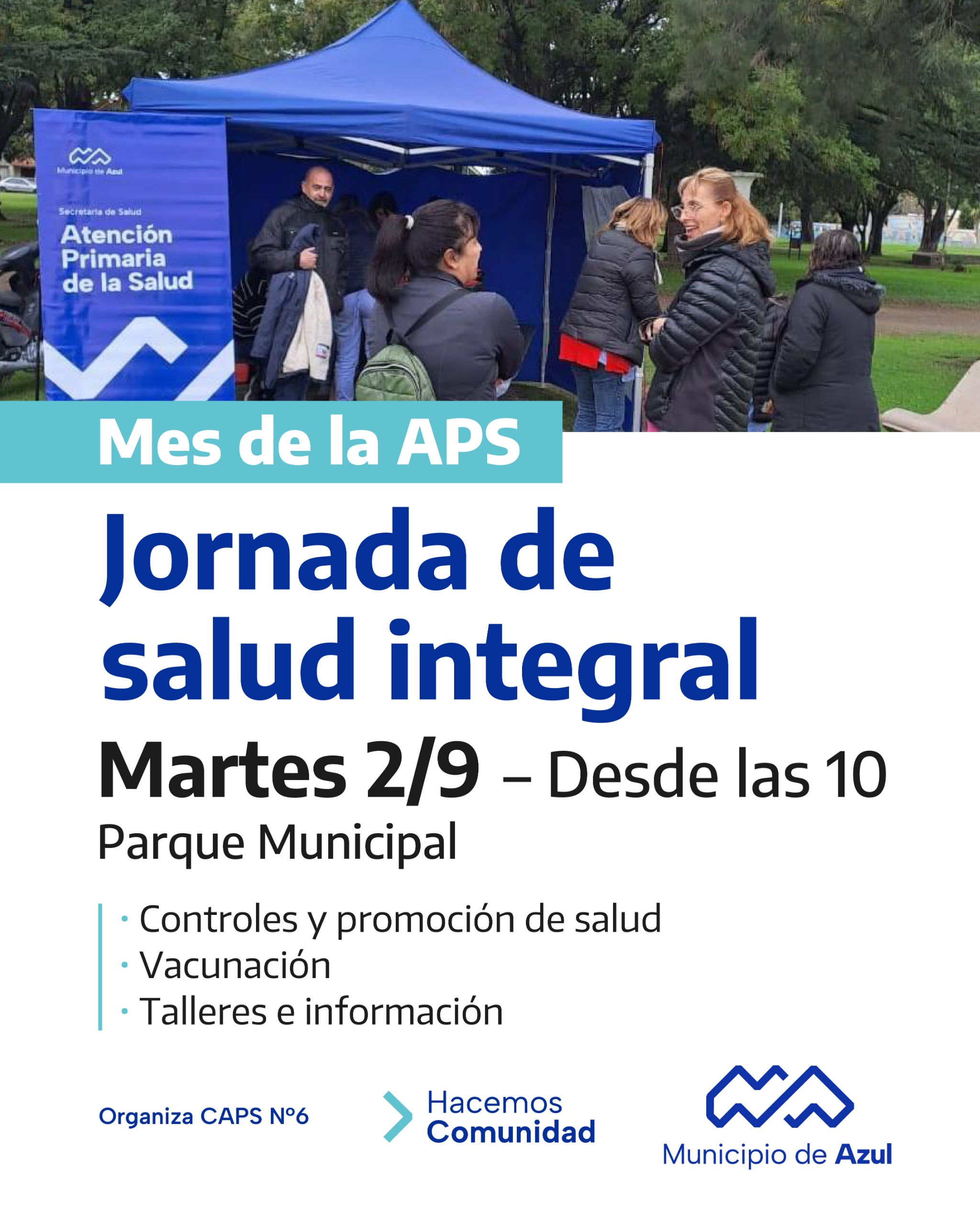Serán coordinadas por el Centro de Atención Primaria N°6, en el marco del Mes de la Atención Primaria de la Salud, que se conmemora cada 12 de septiembre y que en Azul significa el 33° aniversario de la creación del servicio.