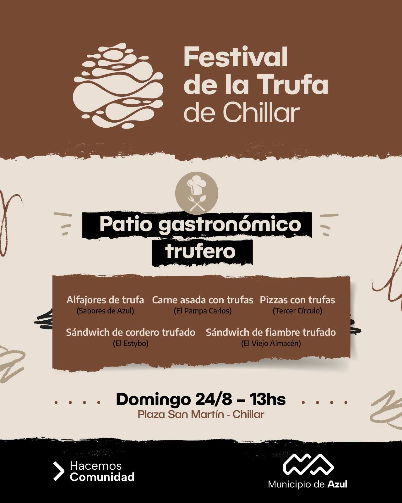 Desde las 13 en la Plaza San Martín de Chillar funcionará un patio gastronómico con múltiples opciones y un sector especialmente destinado a la cocina con trufas.