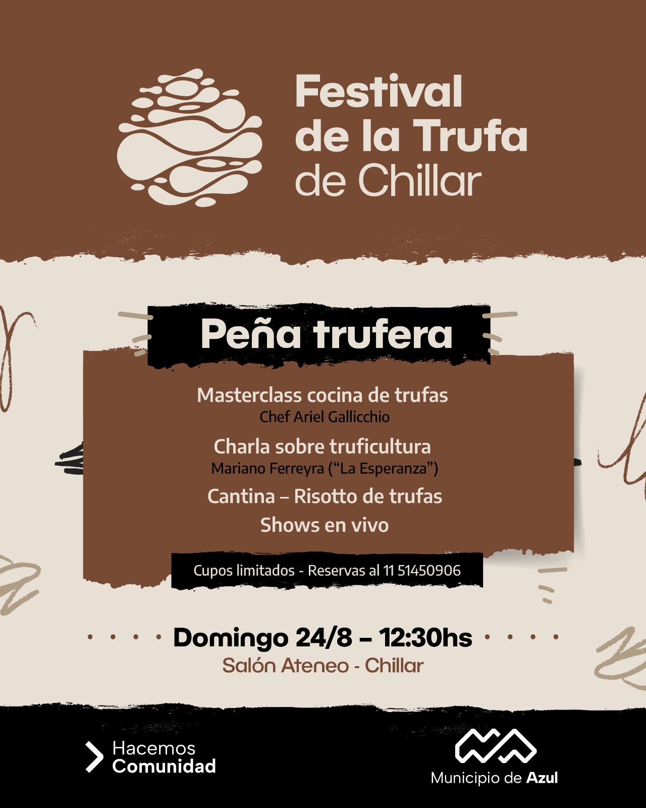 Agregó que la peña trufera en el Salón Ateneo, incluirá una masterclass, a cargo del chef Ariel Gallicchio; que incluye una porción de risotto de trufas y shows en vivo.