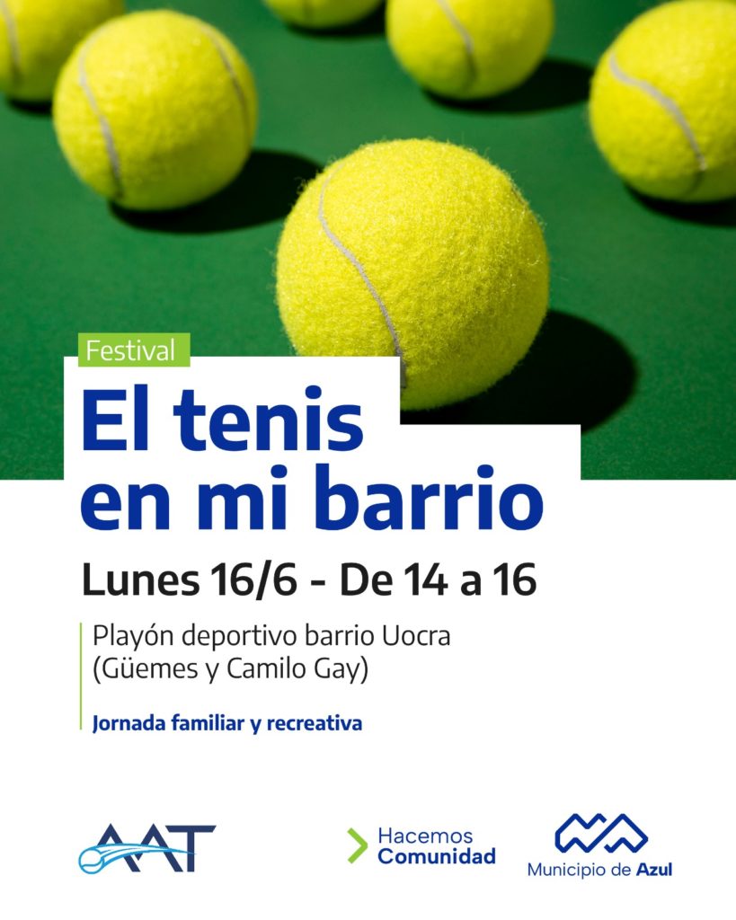 la propuesta será gratuita y abierta a toda la comunidad y es organizada de manera conjunta por la Asociación Argentina de Tenis (AAT) y la comuna. El objetivo es acercar dicha disciplina a niños, niñas, adolescentes y personas adultas.