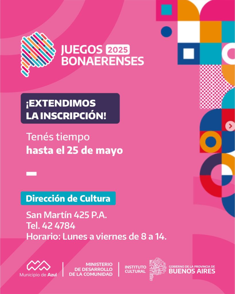 El Municipio de Azul recuerda que hasta el 25 de mayo se extendió la inscripción para participar de los Juegos Bonaerenses.