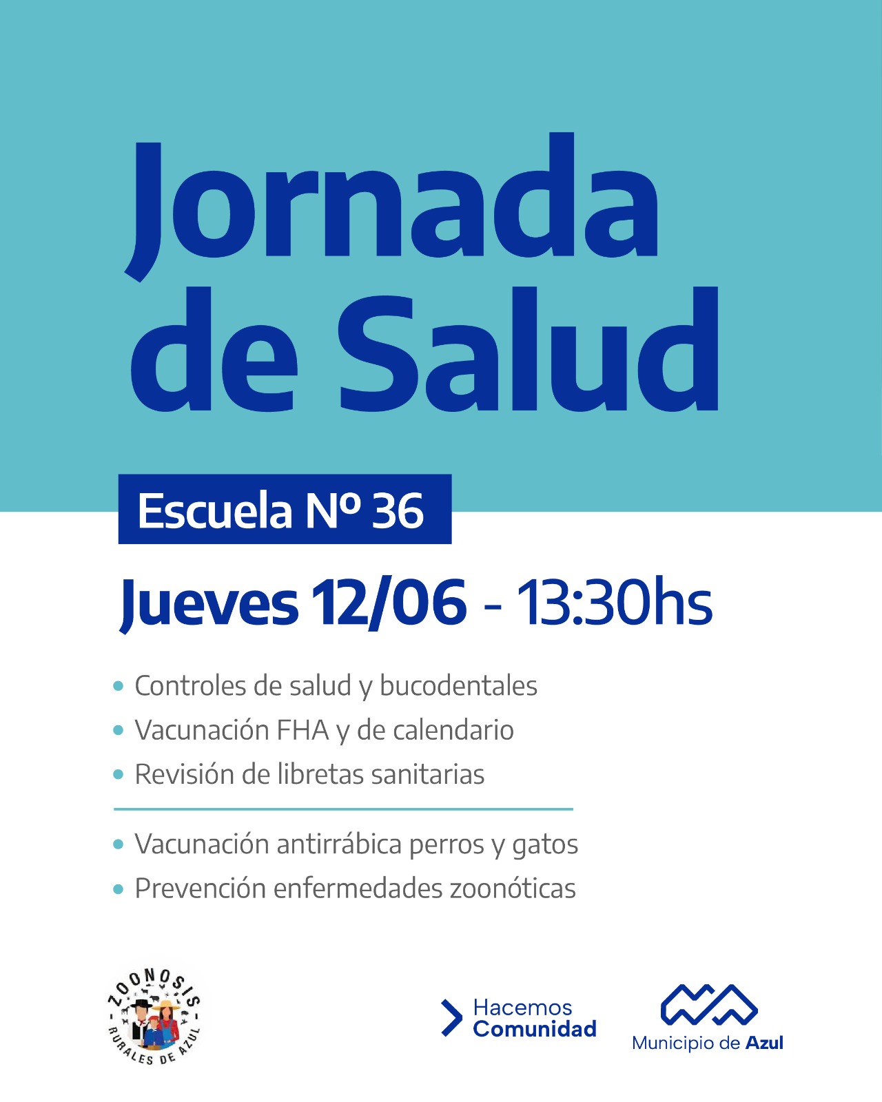 La actividad estará a cargo del equipo itinerante de Atención Primaria de la Salud, que llevará a cabo controles médicos y bucodentales, vacunación de calendario y la aplicación de la vacuna contra la Fiebre Hemorrágica Argentina.
