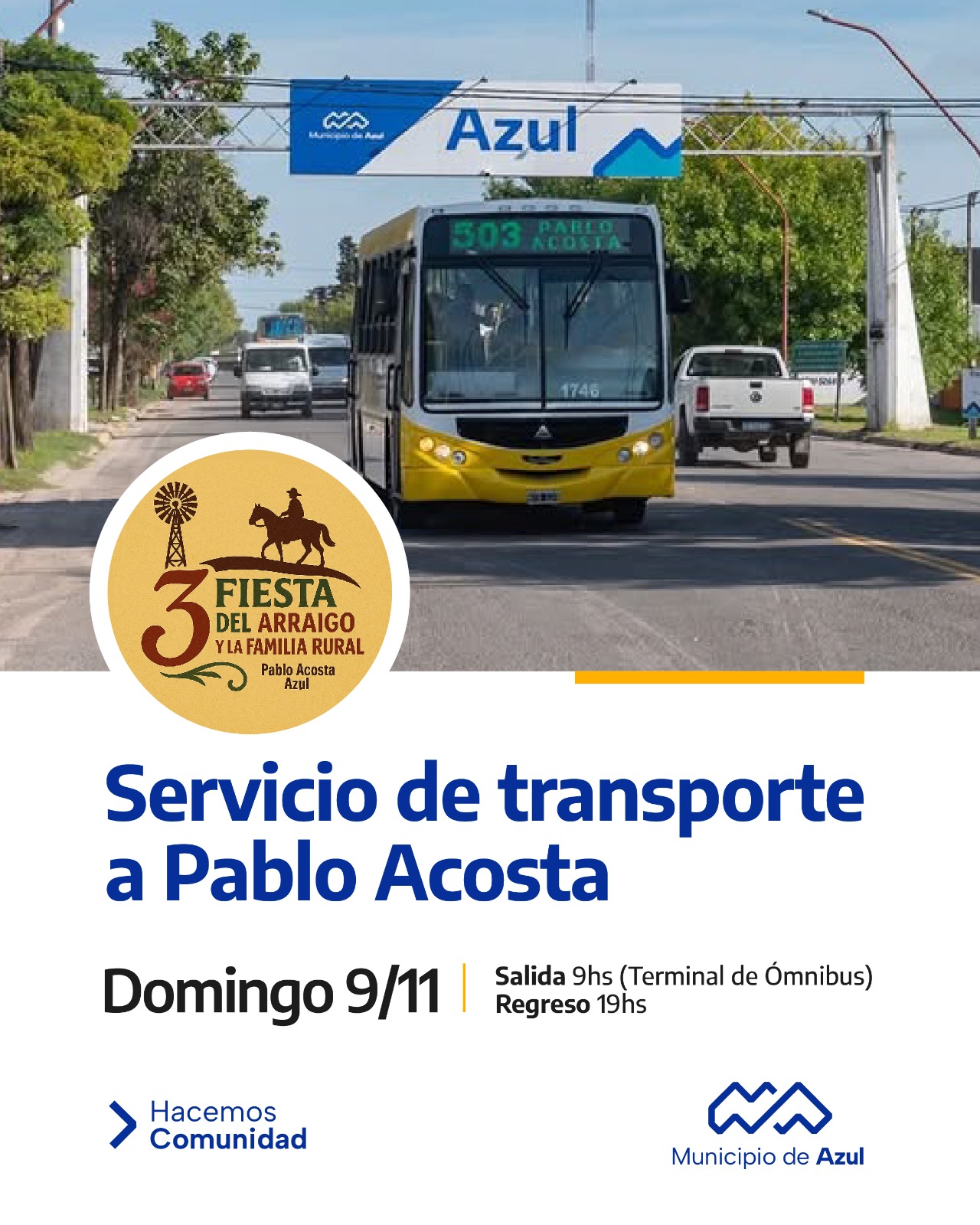 Es en el marco de la 3° edición de la Fiesta del Arraigo y la Familia Rural que será este domingo en el Paraje Pablo Acosta, se dispondrá del bus turístico con destino al evento.