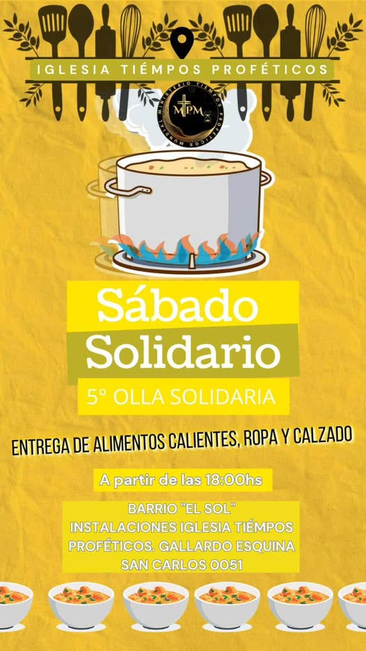 Además, se entregará ropa y calzados, solicitan a los vecinos llevar recipiente para retirar el alimento.