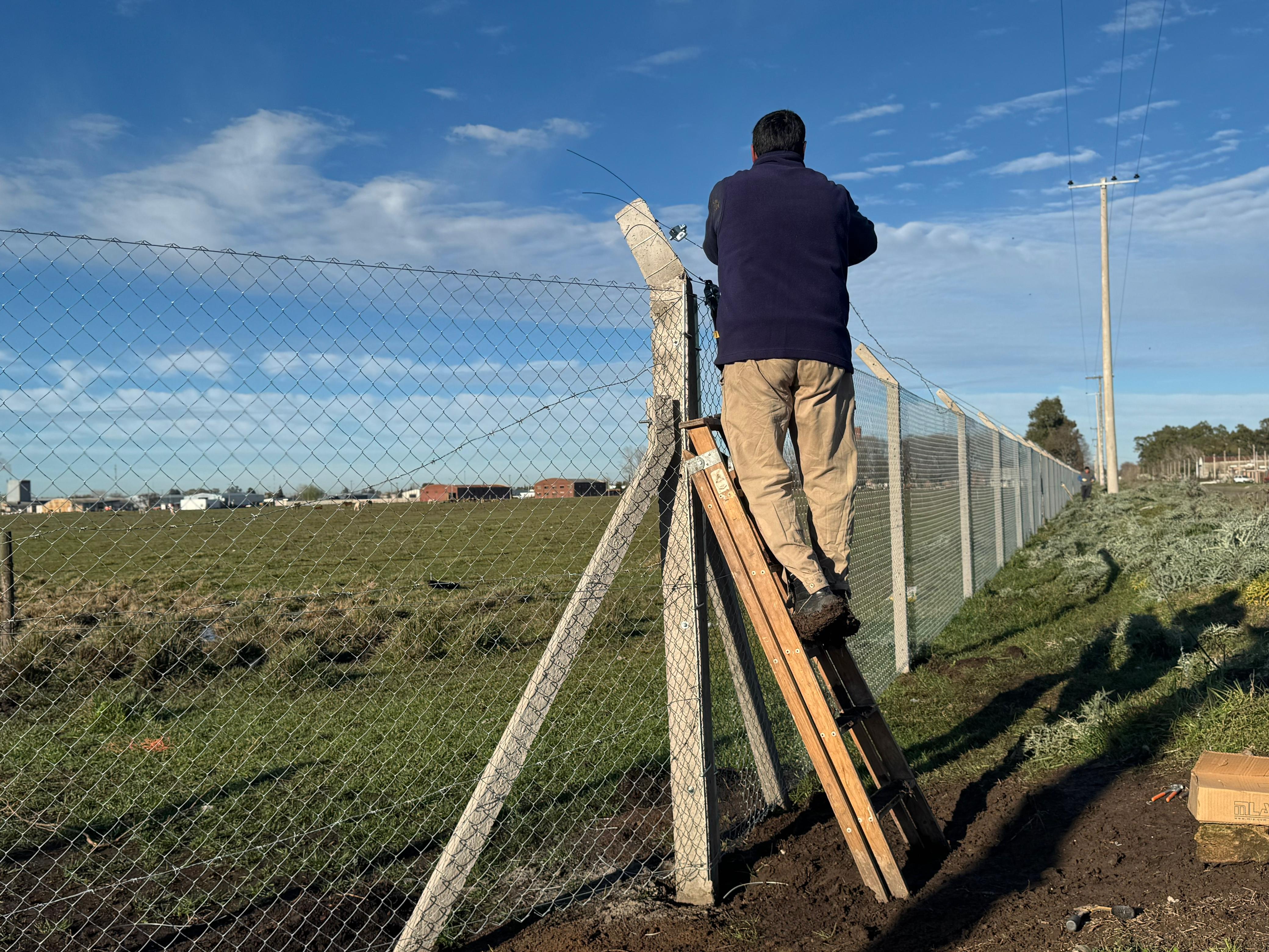 Además, en Sector Industrial Planificado de Azul (SIPA), se realizó el hormigonado con H21, el emplazamiento de tejido romboidal, la instalación de alambres lisos, torniquetes, púas y la finalización mediante sujeción.