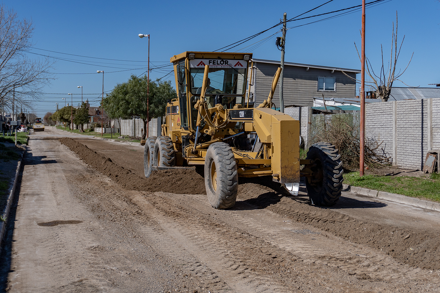 Las obras comprenden limpieza de cunetas, reconformación de perfiles y aporte de estabilizado. Cabe señalar que el material utilizado surge de un convenio con las canteras -a partir de tasas adeudadas - y de la propia tosca de la comuna, lo que permite lograr un producto con mayor nivel de compactación.