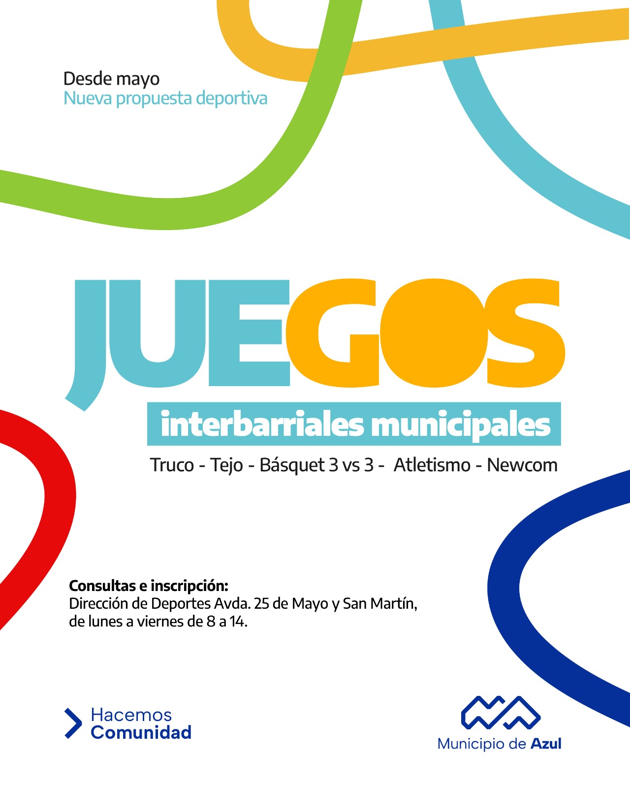 El Municipio de Azul informa que a partir de mayo comenzará a desarrollarse una nueva propuesta deportiva. Se trata de los Juegos interbarriales municipales.
