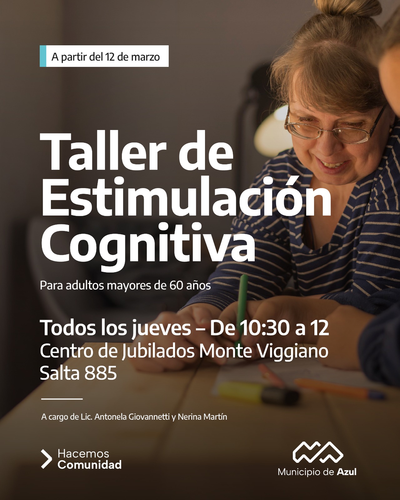 El Municipio de Azul informa que el jueves 12 de marzo comenzará a desarrollarse un taller de estimulación cognitiva.