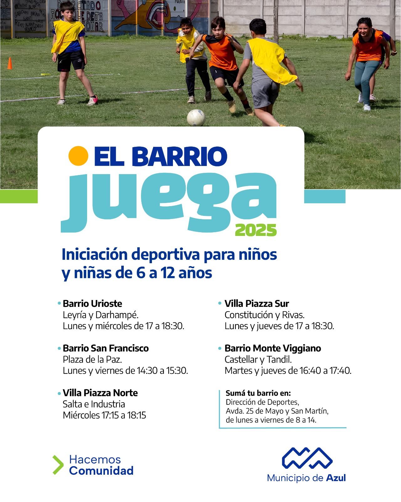 Quienes deseen más información o sumarse a la propuesta, pueden acercarse durante el desarrollo de la acción o dirigirse a la Dirección de Deportes, Av. 25 de Mayo y San Martín, de lunes a viernes de 8 a 14.