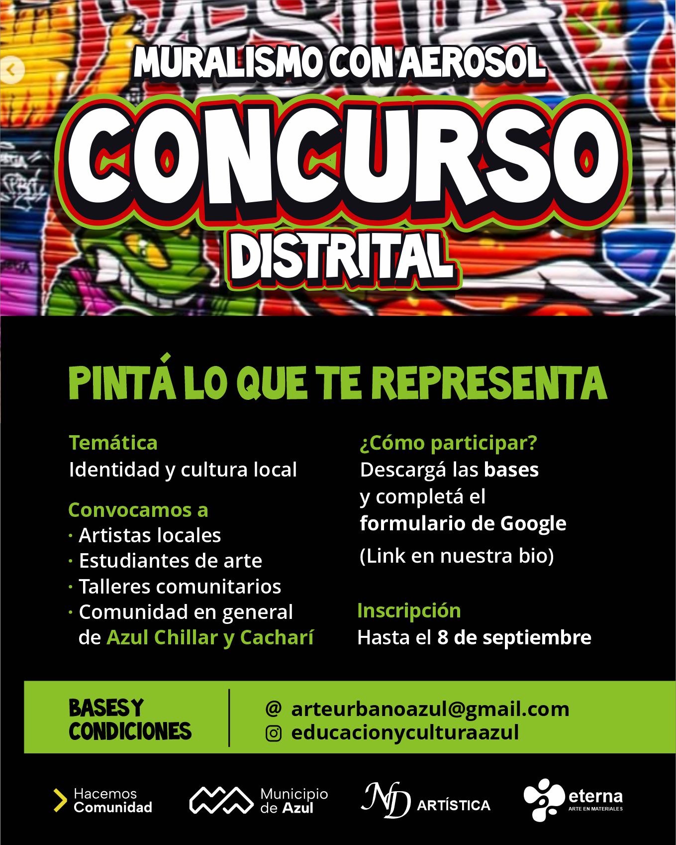 El Municipio, en conjunto con ND artística, con la colaboración de Pinturas Eterna y la línea de aerosoles Bestia, diseñada para arte urbano, muralismo y graffiti profesional, abren la convocatoria para el concurso Distrital de Arte Urbano bajo la temática: Identidad y cultura local.