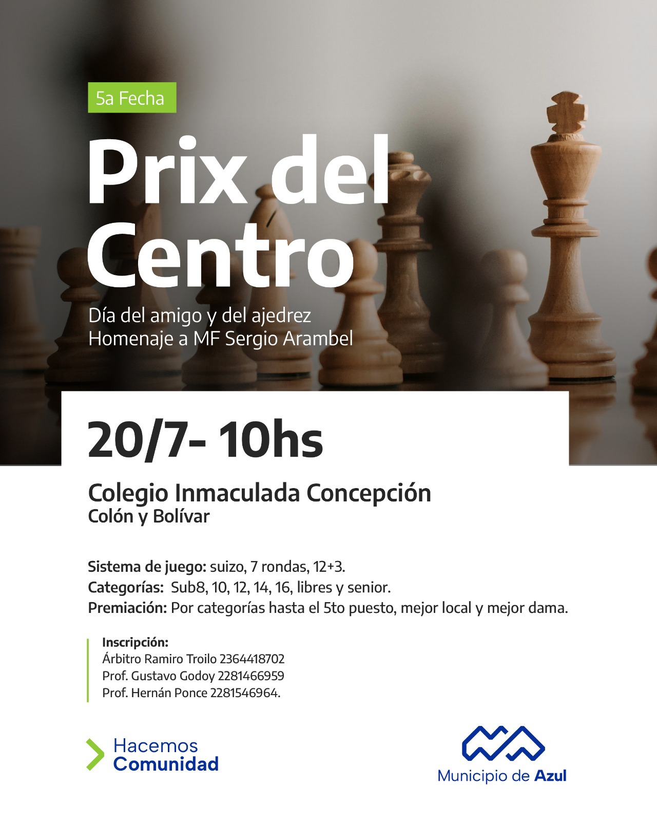 En ese contexto, la Escuela Municipal de Ajedrez realizará un homenaje al Maestro FIDE Sergio Arambel, quien en vida fuera un destacado jugador y referente del ajedrez regional y nacional.