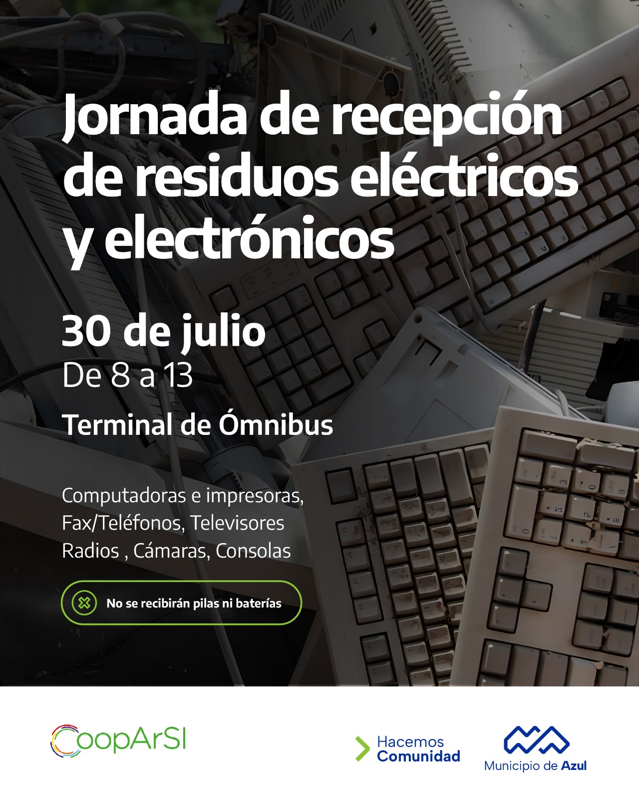Cabe resaltar que no se aceptarán pilas ni baterías.